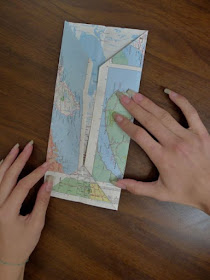 My "Stamp People". I made the guys pants out of a discarded atlas and his arms from old book pages. |